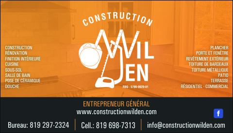 Contactez nous au 819 698-7313 ou par courriel au constructionwilden@outlook.com pour toutes questions